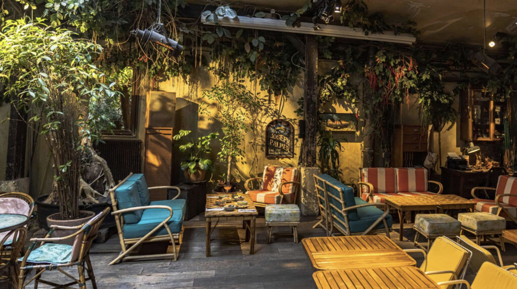 Or head North to  Le Comptoir Général (10th arrondissement) – Le Comptoir Général defines itself as a museum dedicated to ghetto art. The theme of African culture runs through the bar’s cocktails, the artists on display, the dishes, and even the food shop. The affordable Sunday brunch is known to be popular with the locals.