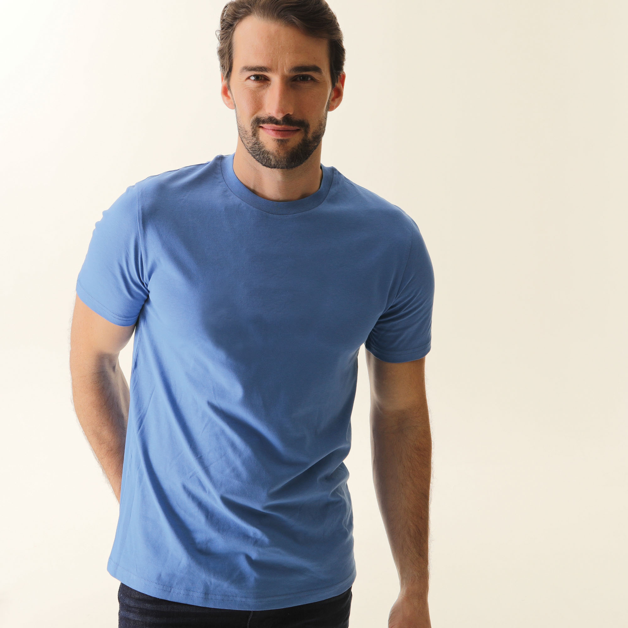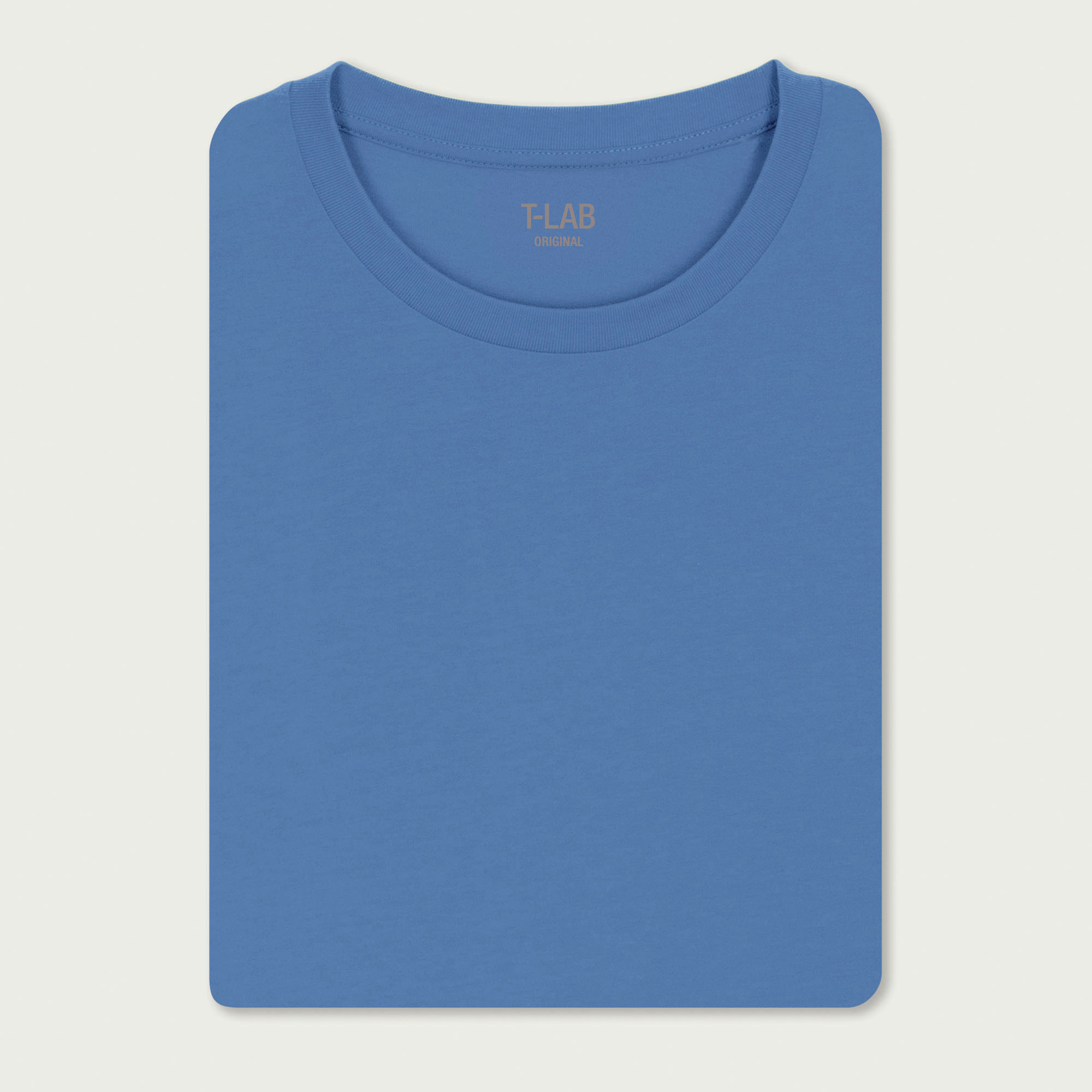 Keeping it simple – undecorated, beautifully made organic cotton t-shirt in Dusky Blue.