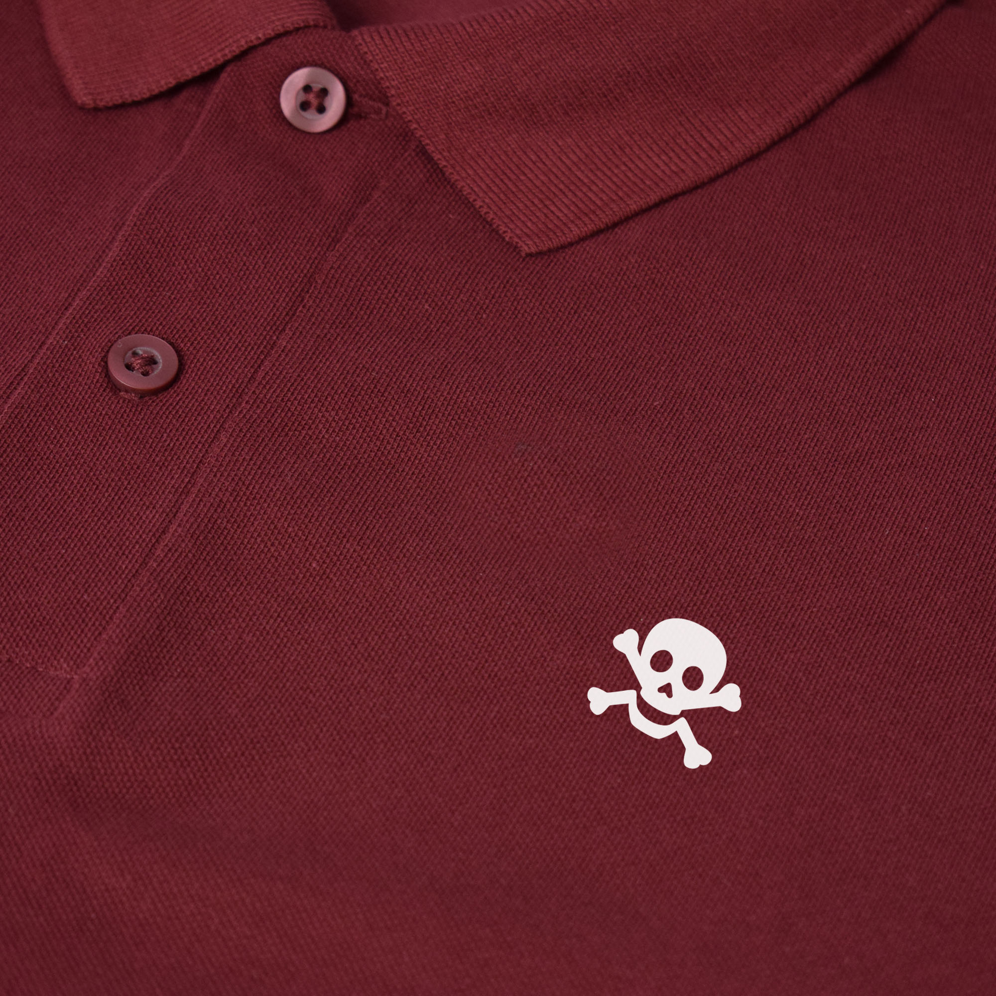 The Jolly Roger skull & crossbones symbol originally came from maritime logbooks – indicating a death on board. It was later adopted by pirates as their flag and used to intimidate other ships. So it’s a bit naughty really, and even though it’s printed onto a classically tailored, organic pique cotton polo, should only be worn by bad boys.