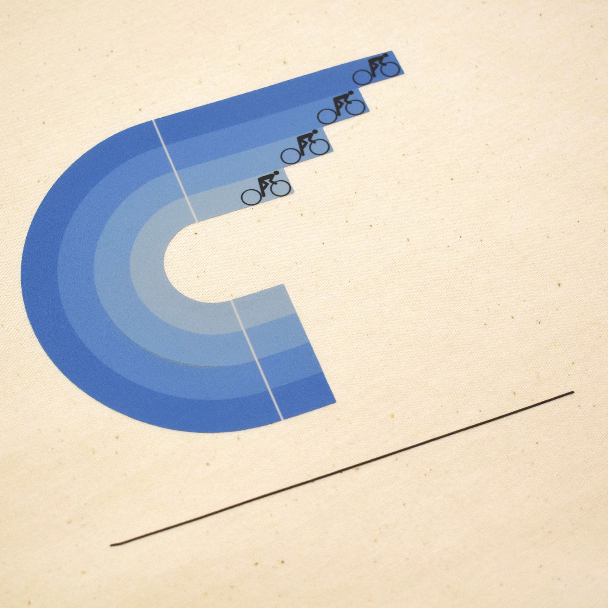 Our Vélo design is a stylised graphic tribute to the art of Vélodrome racing.