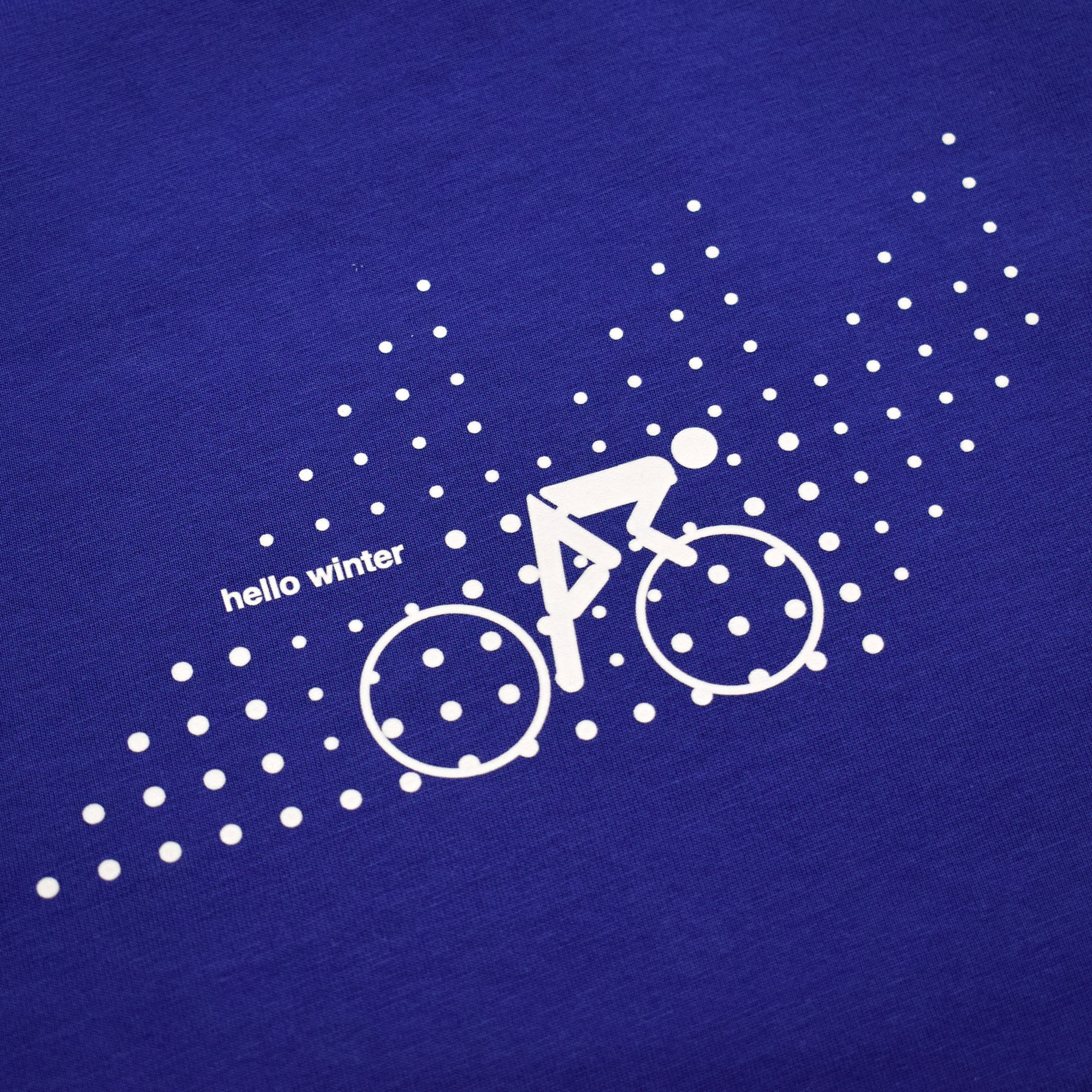 But sometimes the joys of winter cycling – crisp air, cold roads, and the steady rhythm of two wheels – wins through. Our WinterRider design is a wry look at the dark pleasure of keeping it going, whatever the weather.